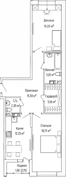 24 183 627 ₽2-к.квартира, 75.69 м², 1 эт.