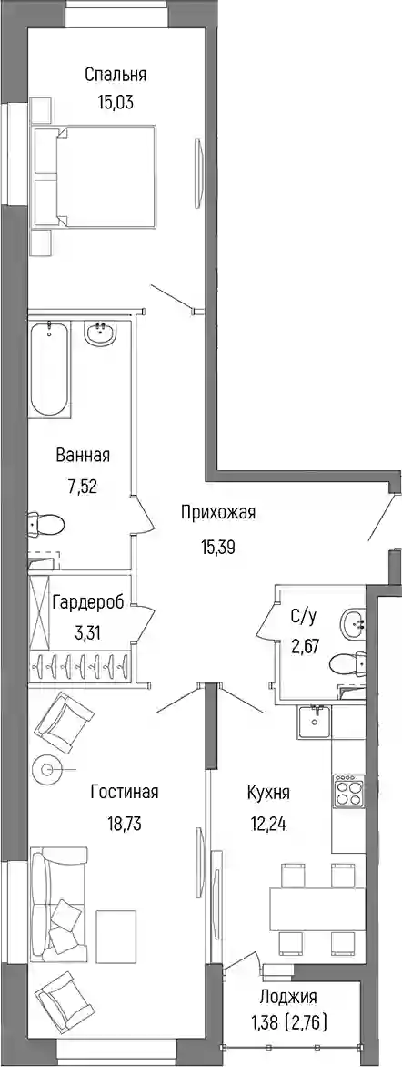24 183 627 ₽2-к.квартира, 75.69 м², 1 эт.