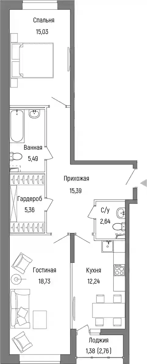 15 337 352 ₽1-к.квартира, 45.91 м², 8 эт.