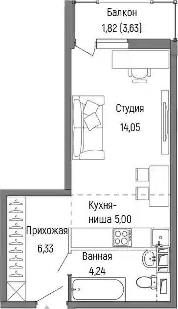 9 887 342 ₽Студия, 29.96 м², 4 эт.