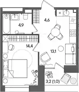 21 981 907 ₽2-к.квартира, 40.6 м², 4 эт.