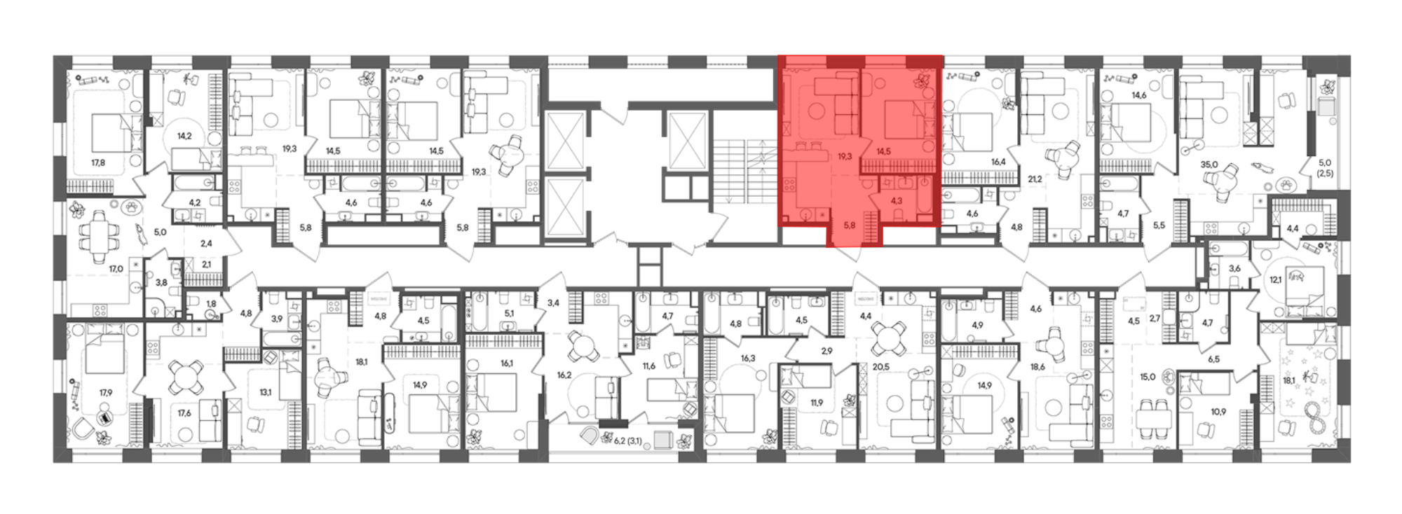 22 788 132 ₽2-к.квартира, 42.7 м², 19 эт.