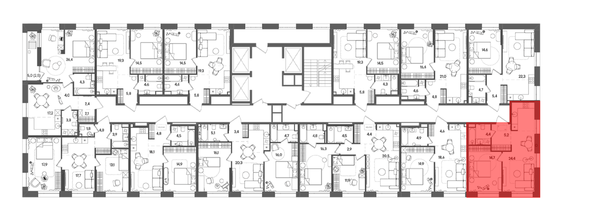 26 367 600 ₽2-к.квартира, 43 м², 4 эт.