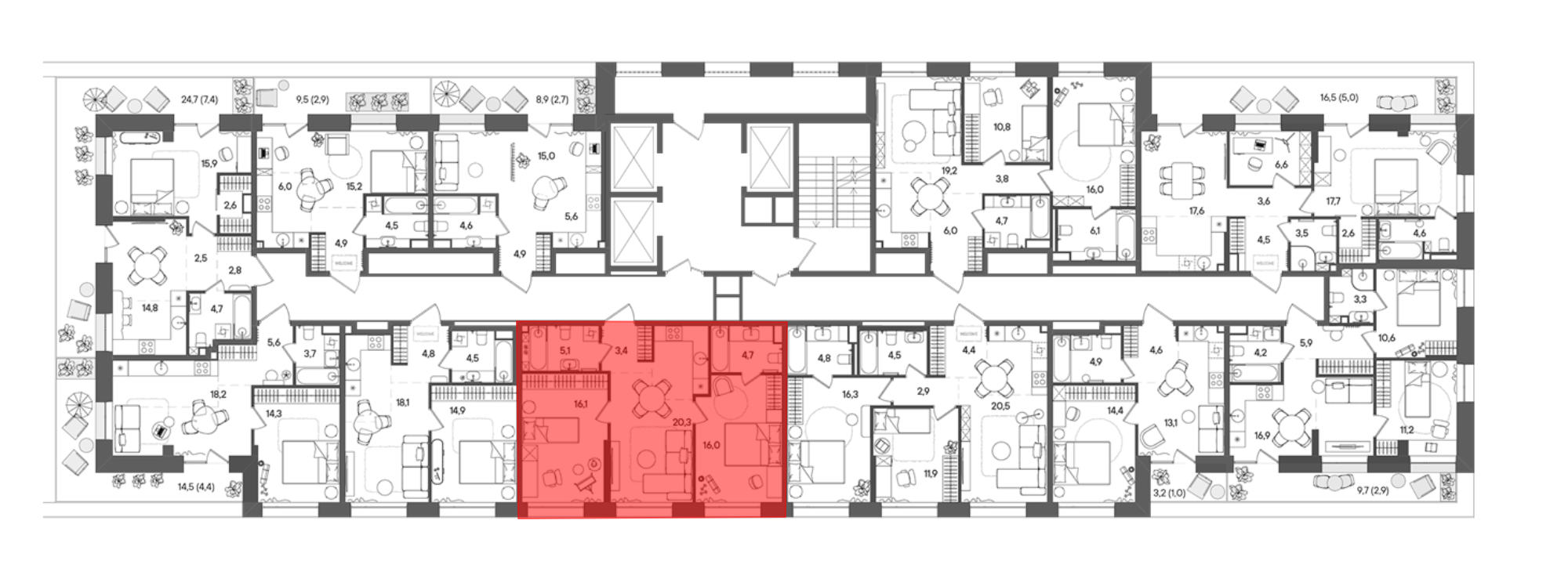 В жилом комплексе представлены планировки как классического формата, так и уникальные лоты: двухуровневые квартиры, просторные угловые кухни-столовые, планировки с мастер-спальней, студии с балконами и квартиры с террасами. Есть планировки, в которых предусмотрено окно в ванной комнате. А также видовые квартиры с видами на парк «Зеленая река» и Москва-Сити. Все квартиры сдаются без отделки, с высокими потолками от 3 метров и увеличенными окнами.