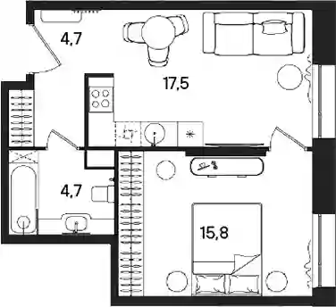 21 945 901 ₽1-к.квартира, 42.4 м², 2 эт.