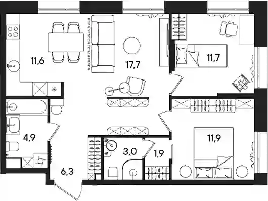 40 302 080 ₽3-к.квартира, 69 м², 23 эт.