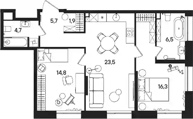 В жилом комплексе представлены планировки как классического формата, так и уникальные лоты: двухуровневые квартиры, просторные угловые кухни-столовые, планировки с мастер-спальней, студии с балконами и квартиры с террасами. Есть планировки, в которых предусмотрено окно в ванной комнате. А также видовые квартиры с видами на парк «Зеленая река» и Москва-Сити. Все квартиры сдаются без отделки, с высокими потолками от 3 метров и увеличенными окнами.