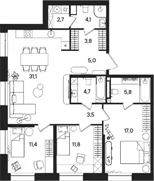 46 833 482 ₽4-к.квартира, 95.4 м², 11 эт.