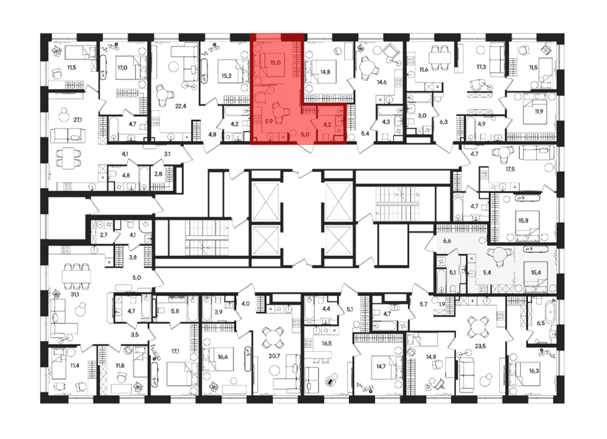 В жилом комплексе представлены планировки как классического формата, так и уникальные лоты: двухуровневые квартиры, просторные угловые кухни-столовые, планировки с мастер-спальней, студии с балконами и квартиры с террасами. Есть планировки, в которых предусмотрено окно в ванной комнате. А также видовые квартиры с видами на парк «Зеленая река» и Москва-Сити. Все квартиры сдаются без отделки, с высокими потолками от 3 метров и увеличенными окнами.