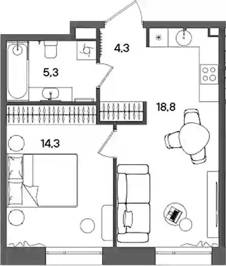 2-к.квартира, 42.7 м², 8 эт. в ЖК Rise Корпус C