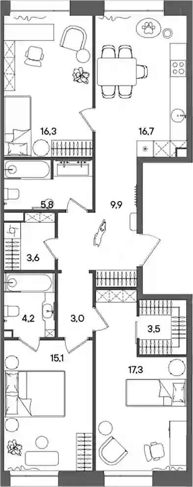 4-к.квартира, 95.4 м², 5 эт. в ЖК Rise Корпус C