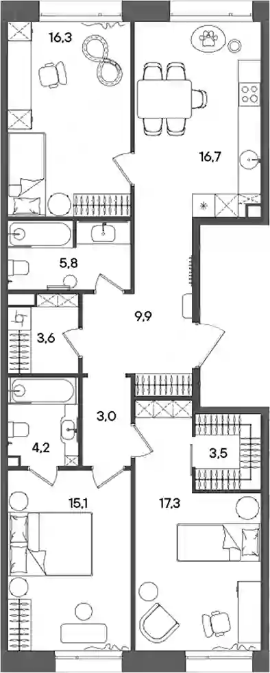 4-к.квартира, 95.4 м², 8 эт. в ЖК Rise Корпус C