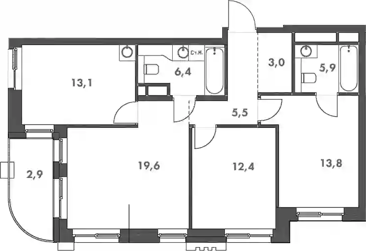 В жилом комплексе представлены три формата недвижимости: квартиры в небоскребах с панорамными видами, резиденции в клубных домах средней этажности и 15 двухуровневых таунхаусов. Площадь квартир варьируется от 41 до 126 кв. метров, а высота потолков составляет от 3,15 до 4,1 метра. Все квартиры сдаются без отделки. Из панорамных окон квартир открываются виды на реку и парк «Долина реки Сетунь».
