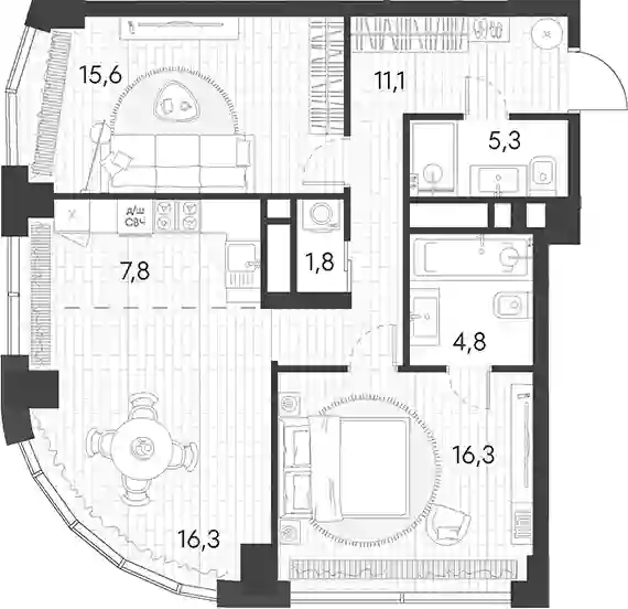 В жилом комплексе представлены три формата недвижимости: квартиры в небоскребах с панорамными видами, резиденции в клубных домах средней этажности и 15 двухуровневых таунхаусов. Площадь квартир варьируется от 41 до 126 кв. метров, а высота потолков составляет от 3,15 до 4,1 метра. Все квартиры сдаются без отделки. Из панорамных окон квартир открываются виды на реку и парк «Долина реки Сетунь».