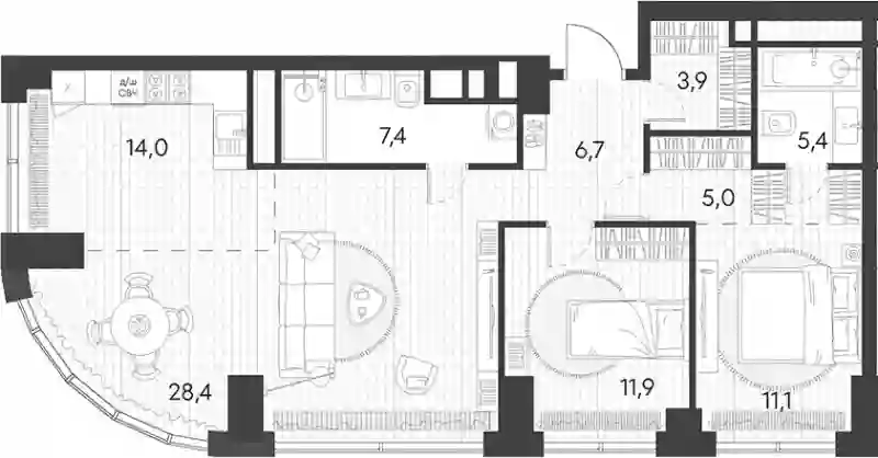 В комплексе предложен широкий выбор планировочных решений от студий до 5-ти комнатных квартир. Также доступны уникальные форматы: квартиры с панорамными гостиными и террасами. Все квартиры сдаются без стен, что открывает возможности для индивидуального оформления. Высота потолков составляет 2,8 метра, а окна — панорамные и увеличенные.