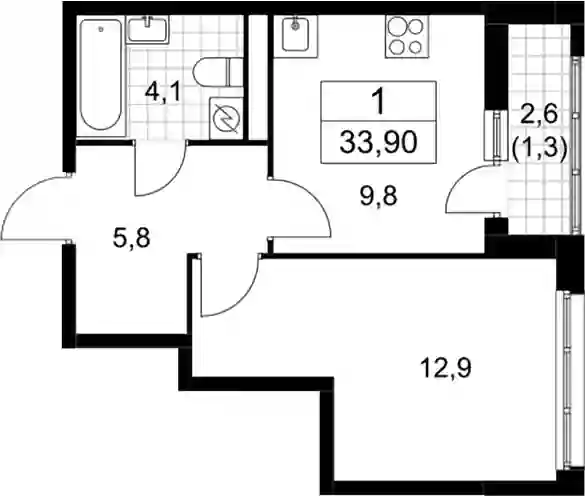12 139 284 ₽1-к.квартира, 33.7 м², 9 эт.