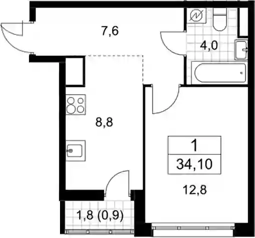 12 257 696 ₽1-к.квартира, 34.6 м², 9 эт.