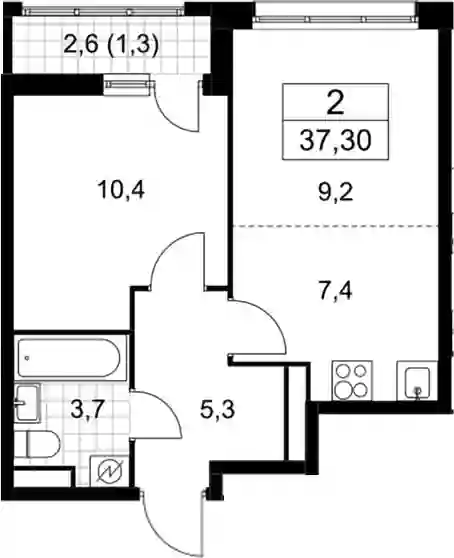 9 730 602 ₽2-к.квартира, 39.3 м², 9 эт.