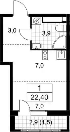8 300 880 ₽Студия, 22.6 м², 7 эт.