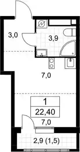 9 414 720 ₽Студия, 22.5 м², 6 эт.
