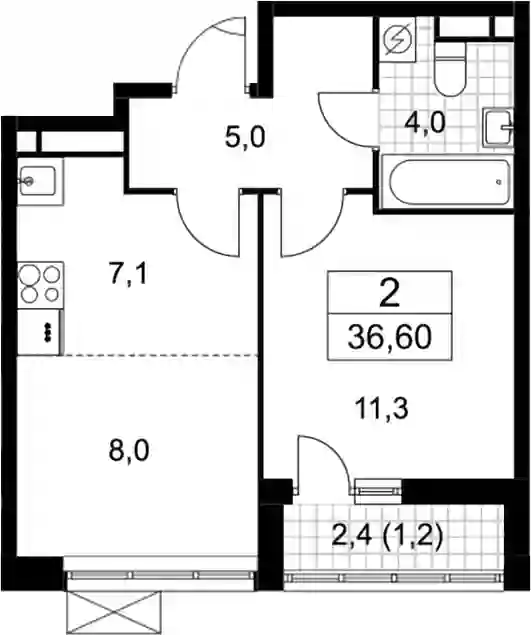 11 063 646 ₽2-к.квартира, 41.4 м², 8 эт.