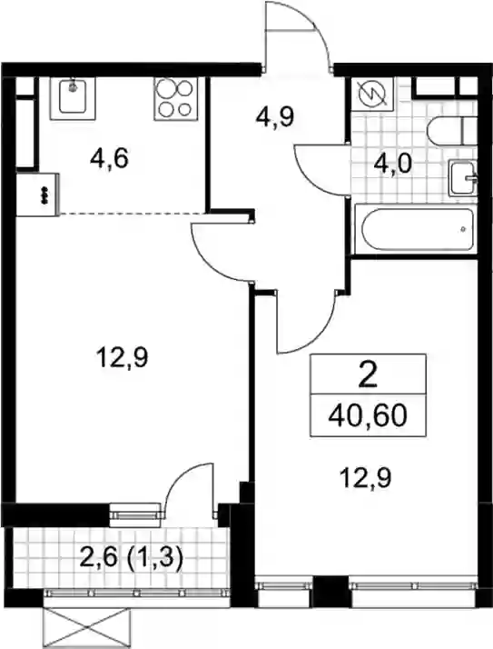 2-к.квартира, 39.3 м², 9 эт. в ЖК Родные кварталы Корпус 2