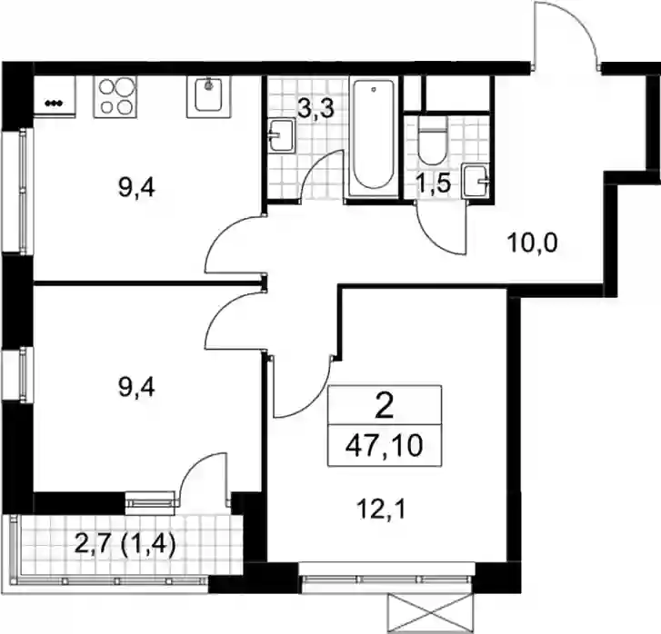 11 321 884 ₽2-к.квартира, 41.4 м², 9 эт.