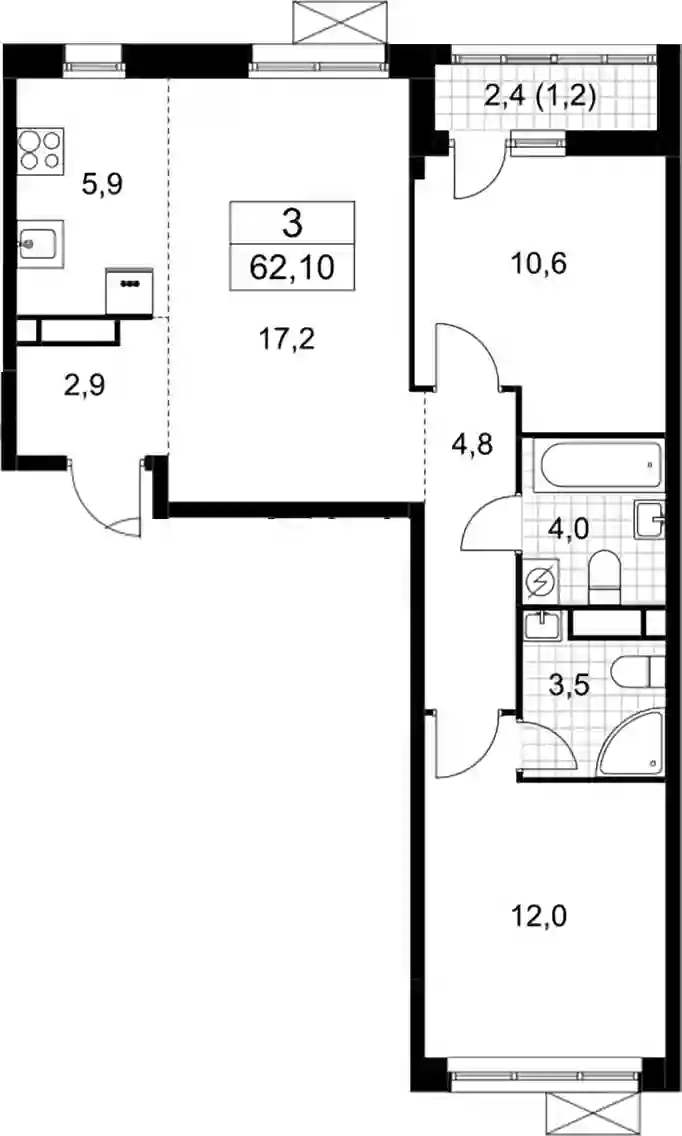 60.9 м2