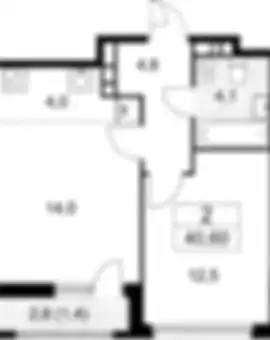 11 401 698 ₽2-к.квартира, 39.4 м², 8 эт.