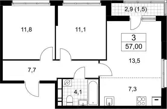 3-к.квартира, 55.5 м², 8 эт. в ЖК Родные кварталы Корпус 3.1