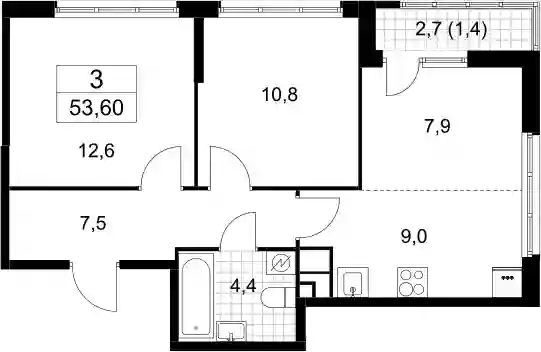 3-к.квартира, 52.2 м², 10 эт. в ЖК Родные кварталы Корпус 3.2