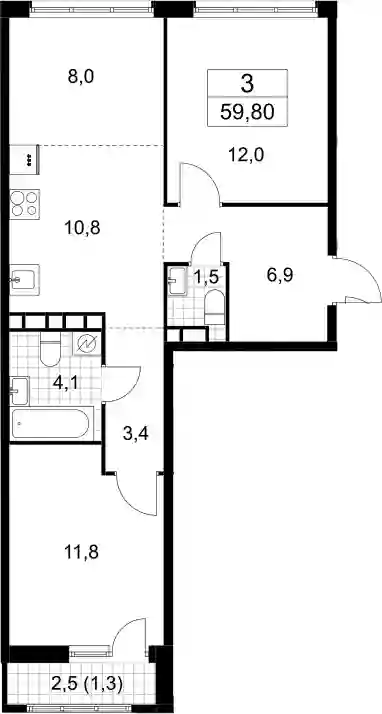 3-к.квартира, 58.5 м², 8 эт. в ЖК Родные кварталы Корпус 3.2