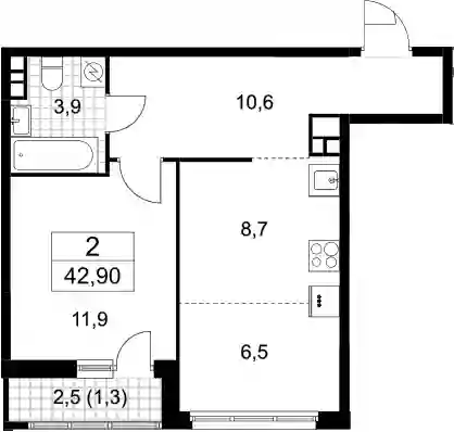 12 858 600 ₽2-к.квартира, 42.2 м², 2 эт.