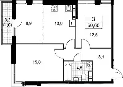 16 978 302 ₽3-к.квартира, 59.6 м², 10 эт.