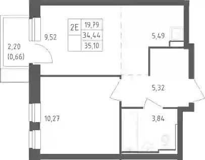 7 215 535 ₽2-к.квартира, 34.76 м², 9 эт.