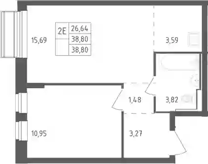 8 054 180 ₽2-к.квартира, 39.11 м², 9 эт.