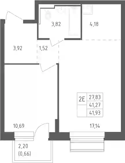 8 433 937 ₽2-к.квартира, 41.27 м², 2 эт.