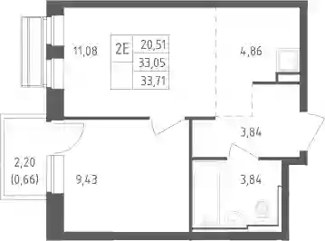 9 470 391 ₽2-к.квартира, 39.08 м², 6 эт.