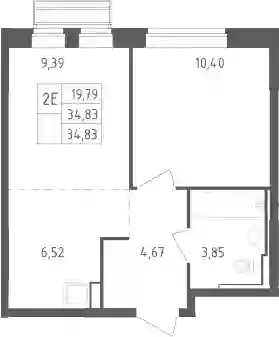5 748 900 ₽2-к.квартира, 34.83 м², 9 эт.