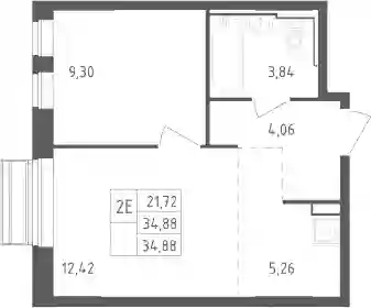 5 748 900 ₽2-к.квартира, 34.83 м², 9 эт.
