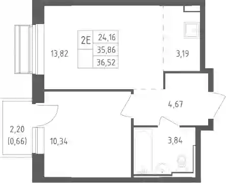 6 558 298 ₽2-к.квартира, 35.86 м², 6 эт.