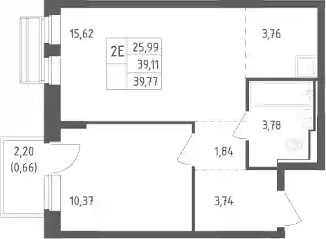 9 470 391 ₽2-к.квартира, 39.08 м², 6 эт.