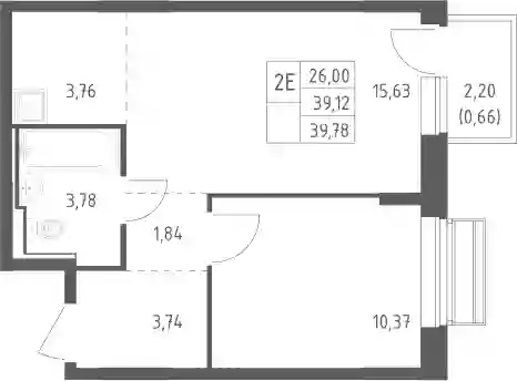 9 582 311 ₽2-к.квартира, 39.08 м², 5 эт.