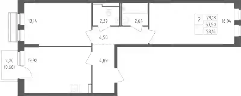 57.5 м2