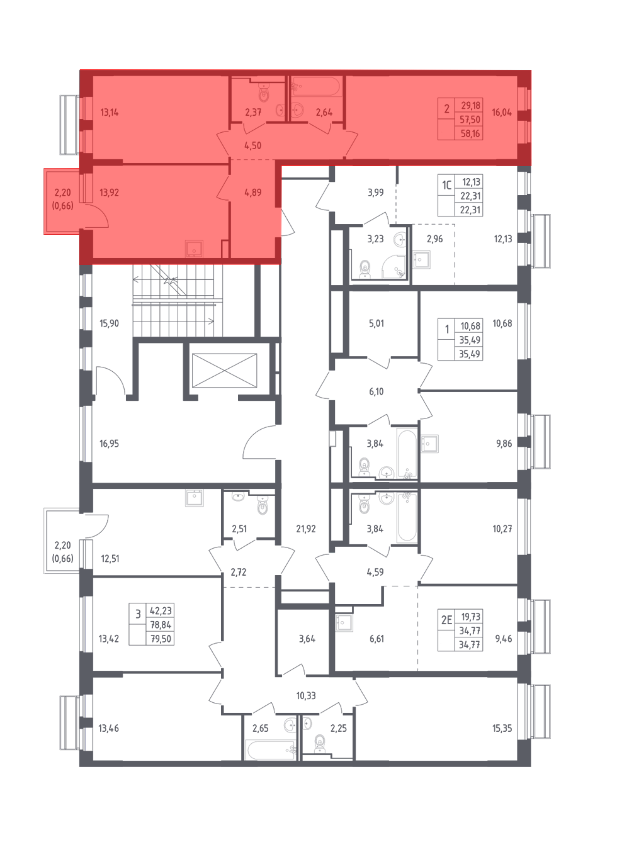 10 263 540 ₽2-к.квартира, 57.5 м², 3 эт.
