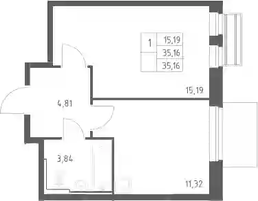 7 877 659 ₽1-к.квартира, 35.13 м², 4 эт.
