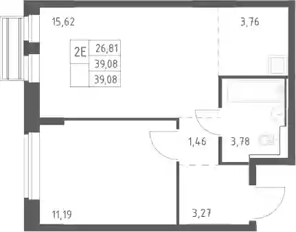 8 372 956 ₽2-к.квартира, 41.27 м², 2 эт.
