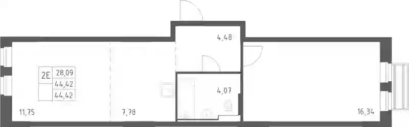 7 641 661 ₽2-к.квартира, 44.42 м², 6 эт.