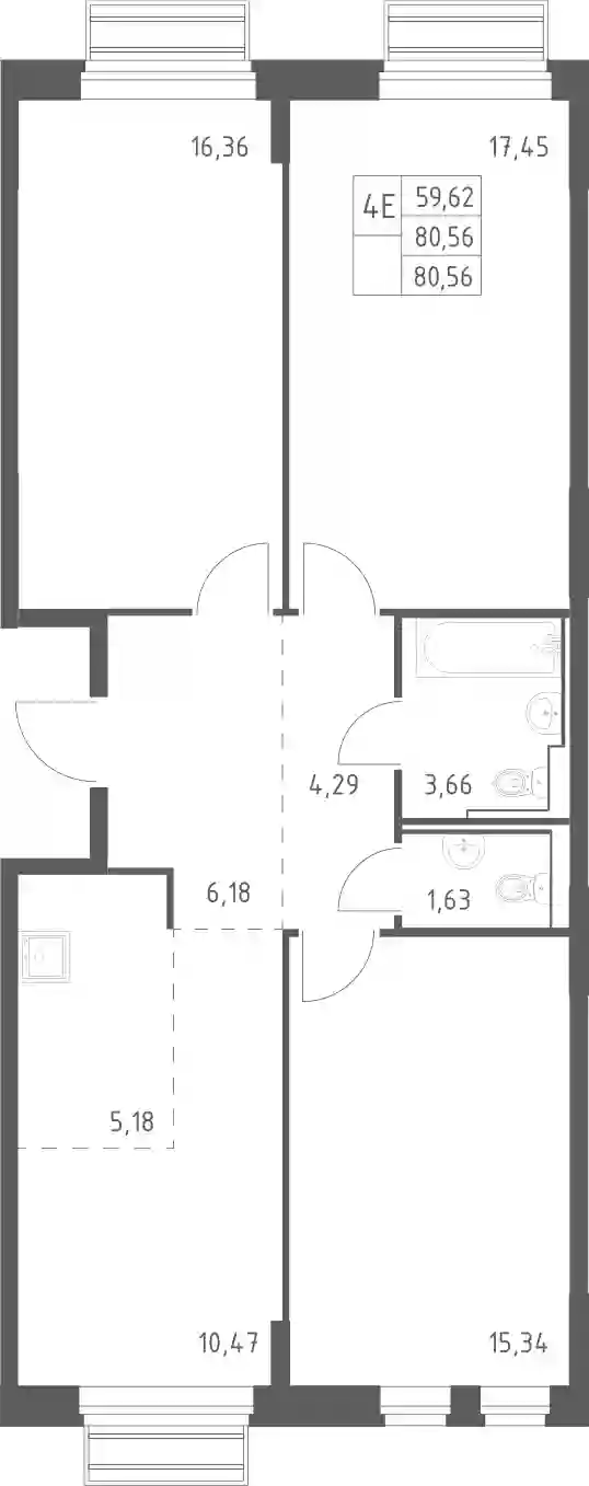 17 539 159 ₽4-к.квартира, 80.56 м², 3 эт.