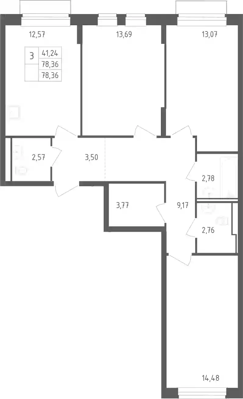 В проекте представлено множество планировочных решений — от студий до просторных 4х-комнатных квартир. Лоты сдаются с чистовой отделкой, увеличенными окнами с угловым остеклением, высотой потолков 3 метра.